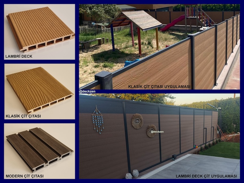 Gaziantep Kompozit Cit hizmeti verdiğimiz ahşap desenli kompozit deckler, doğal ahşaba alternatif olarak günümüzde en çok tercih edilen kaplama malzemelerinin başında yer almaktadır. Gaziantep Kompozit Cit İklim koşullarına dirençli, bakım gerektirmeden uzun yıllar kullanabileceğiniz kompozit deck malzemeleri, teras, balkon, kış bahçesi, havuz çevresi, iskele, peyzaj, cafe restoran alanları gibi genis bir kullanım yelpazesine sahiptir.
